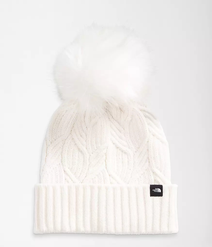 Cable-knit beanie with a pom for a classic, cold-weather look.