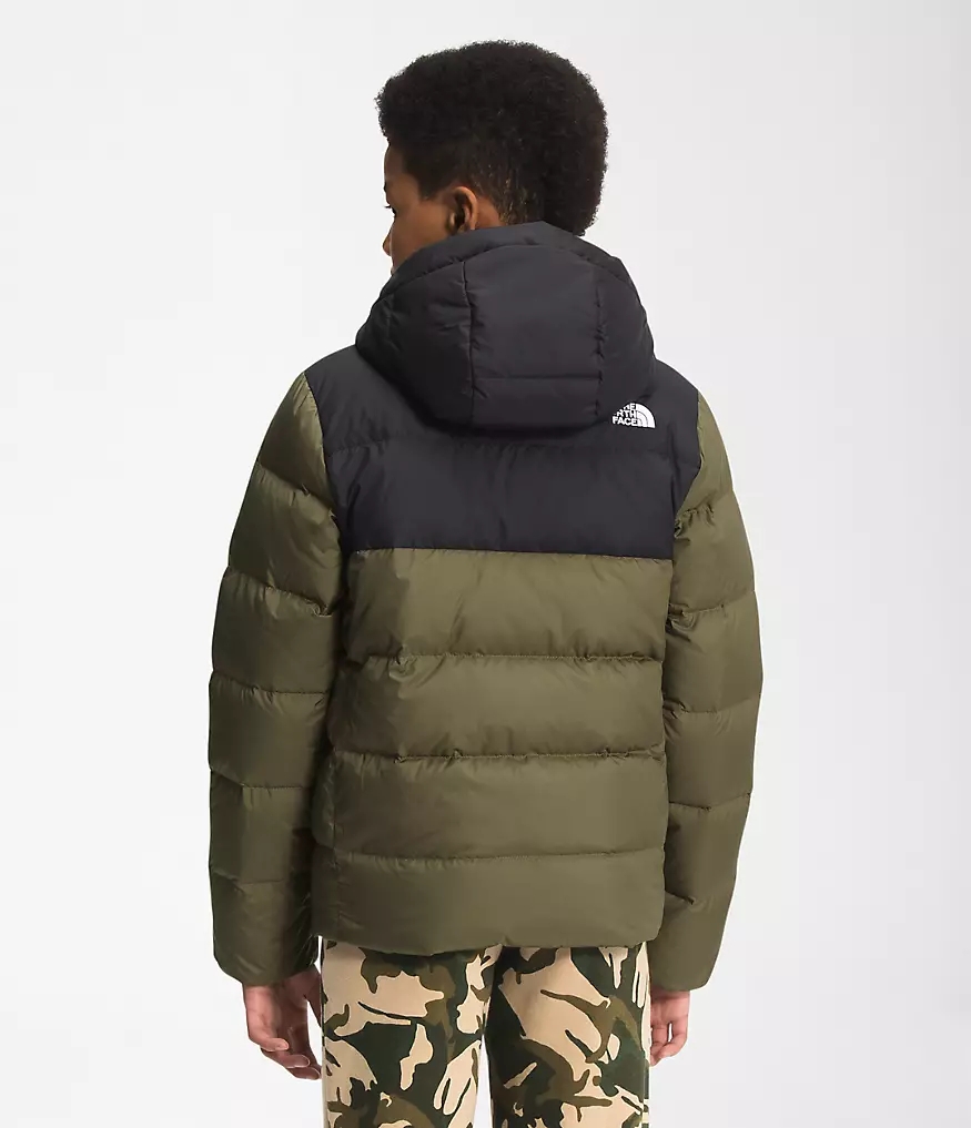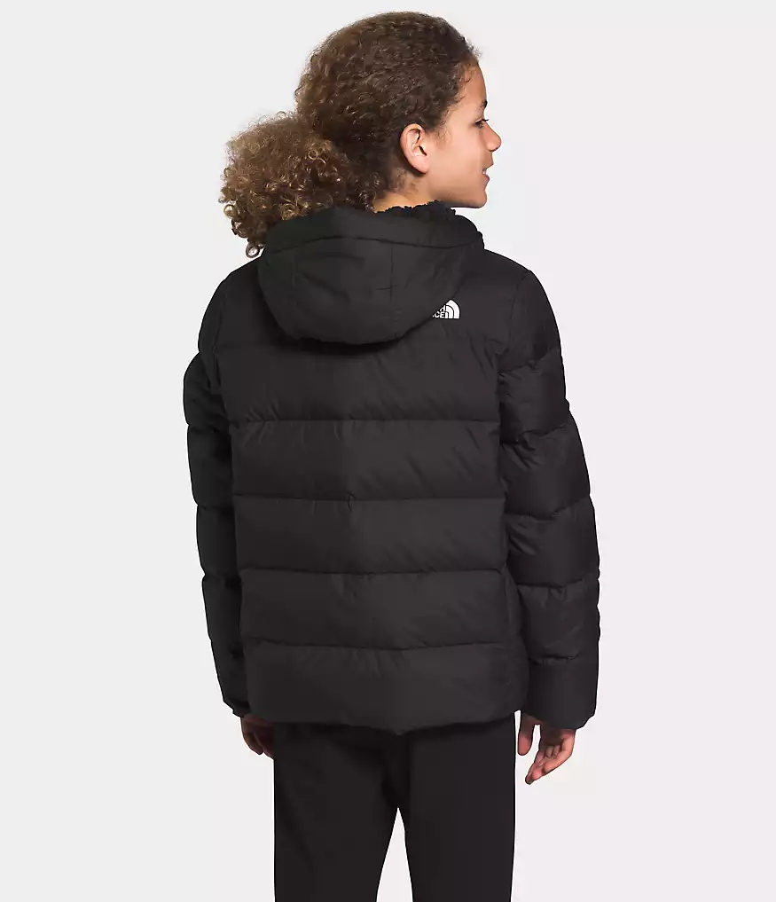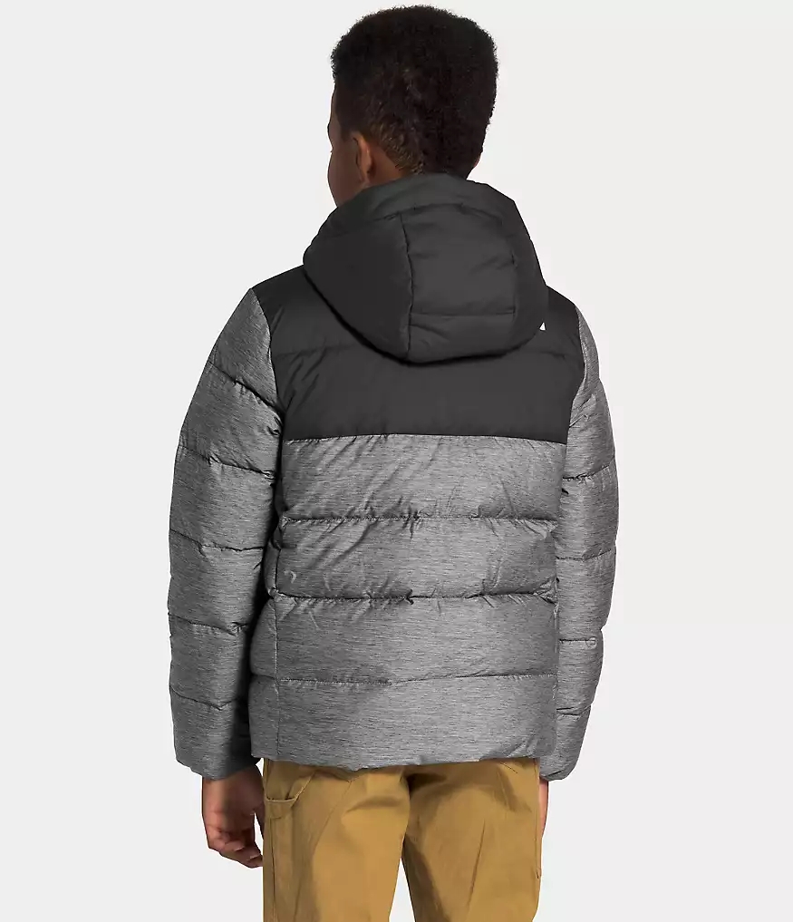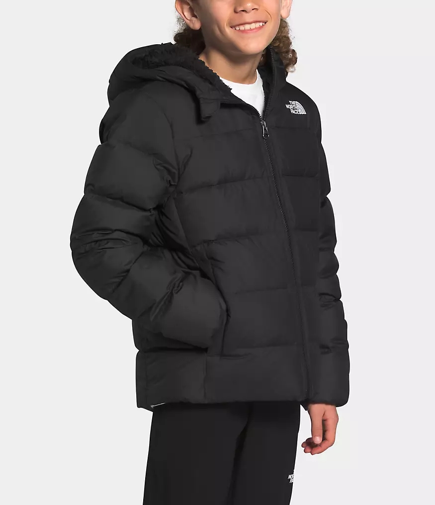 The updated Youth Moondoggy Hoodie is water-repellant, insulated with 550-fill Down and features a Sherpa-fleece lined hood and shoulders for all-conditions coziness.